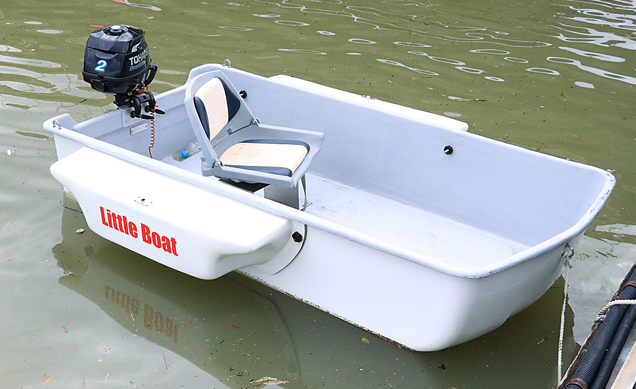 - 全長290cm・重量39kgで2馬力から6馬力まで対応の2人乗り艇